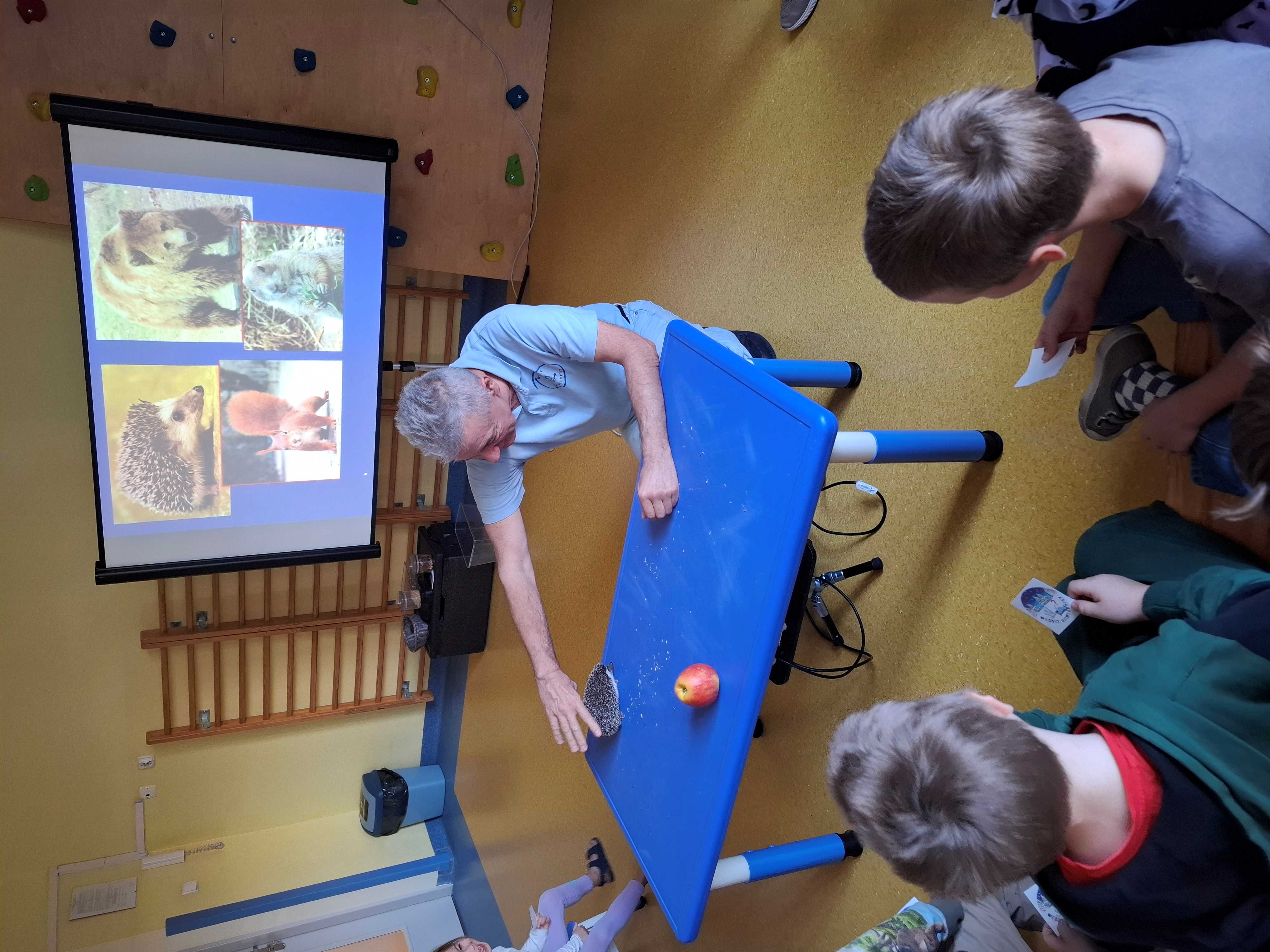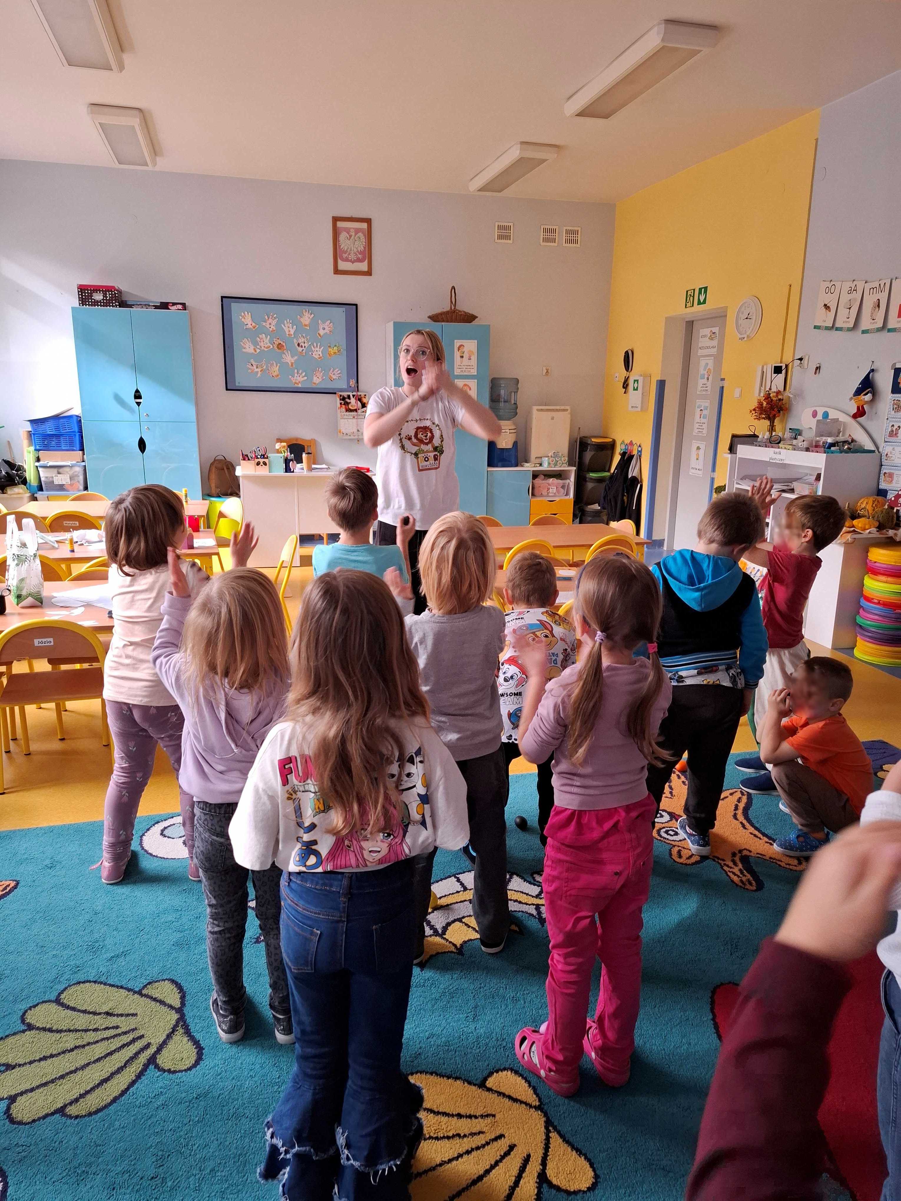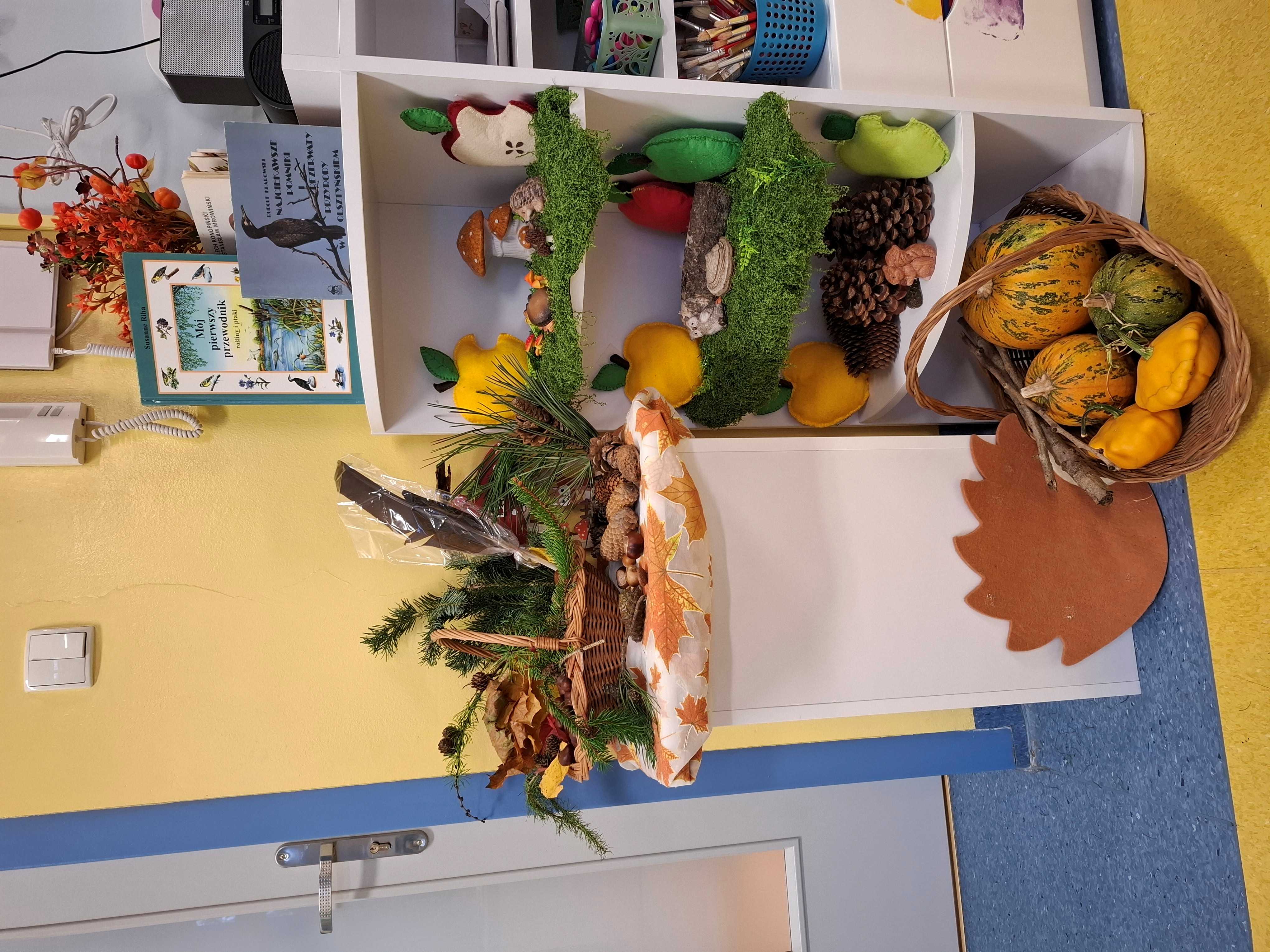 Pierwszy tydzień października wiązał się tematycznie z poprzednim – rozmawialiśmy o przyrodzie, ale w odniesieniu do naszych postaw wobec świata roślin i zwierząt. Dzieci poznały zasady zachowania w lesie i w parku na podstawie opowiadania „Większy Piotrek i tajemnice lasu”, pogłębiły wiedzę na temat wybranych zwierząt leśnych (wiewiórka, jeż, mysz, sarna, dzik, niedźwiedź) i wykonały piękną jesienną pracę plastyczną. Poznały też literę „a, A”, wykonywały ćwiczenia fonacyjne z głoską „a”, wskazywały wyrazy, w których występuje głoska „a”. Matematyczne zabawy dotyczyły liczby 1. Przedszkolaki brały również udział w wielu zabawach ruchowych – „Naśladujemy zwierzęta, wywołujemy ciszę”, „Zmyślna wiewiórka”, „Do norki”, „Wiewiórki robią zapasy”. Dzieci chętnie uczestniczą w zabawach ruchowych, których temat osnuty jest wokół zwierząt i ich zwyczajów – zwiększa to zaangażowanie dzieci w ćwiczenia, wywołuje pozytywne emocje i dostarcza wiele radości.