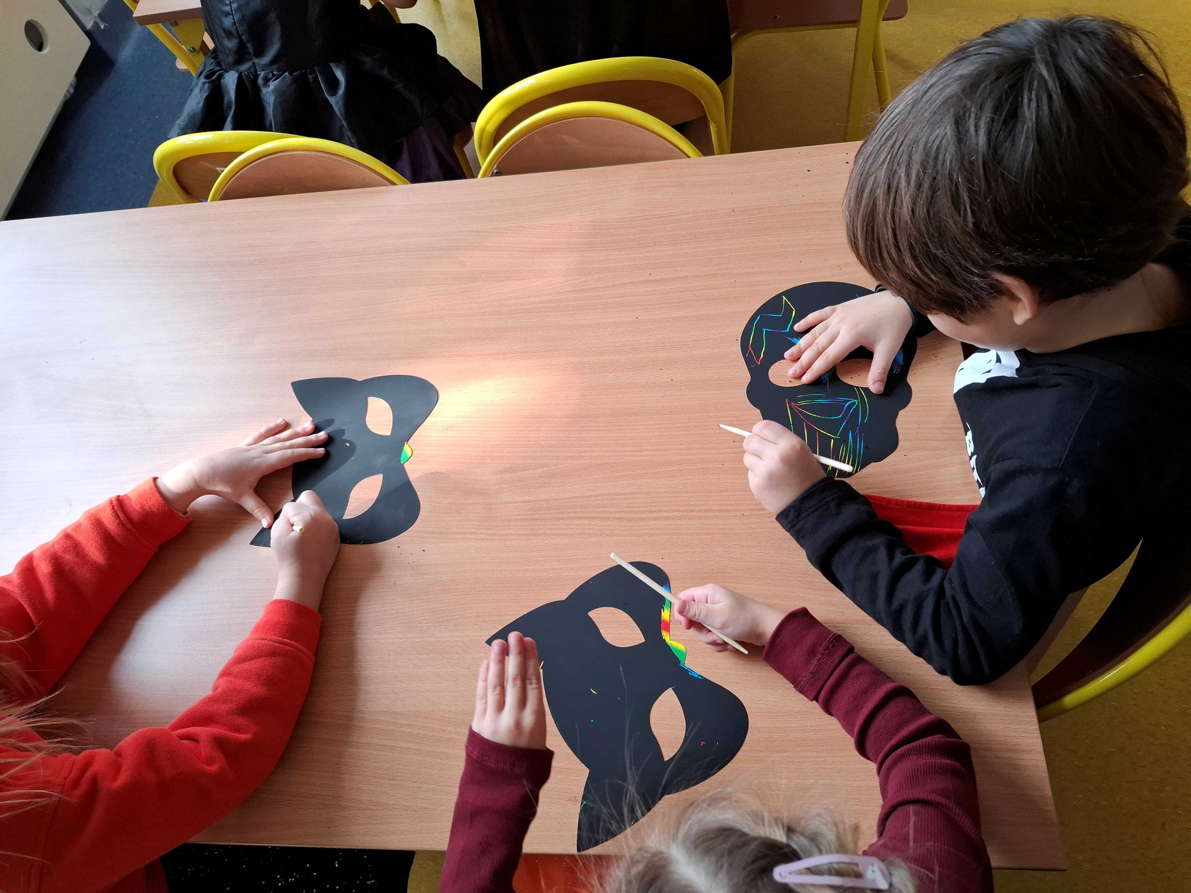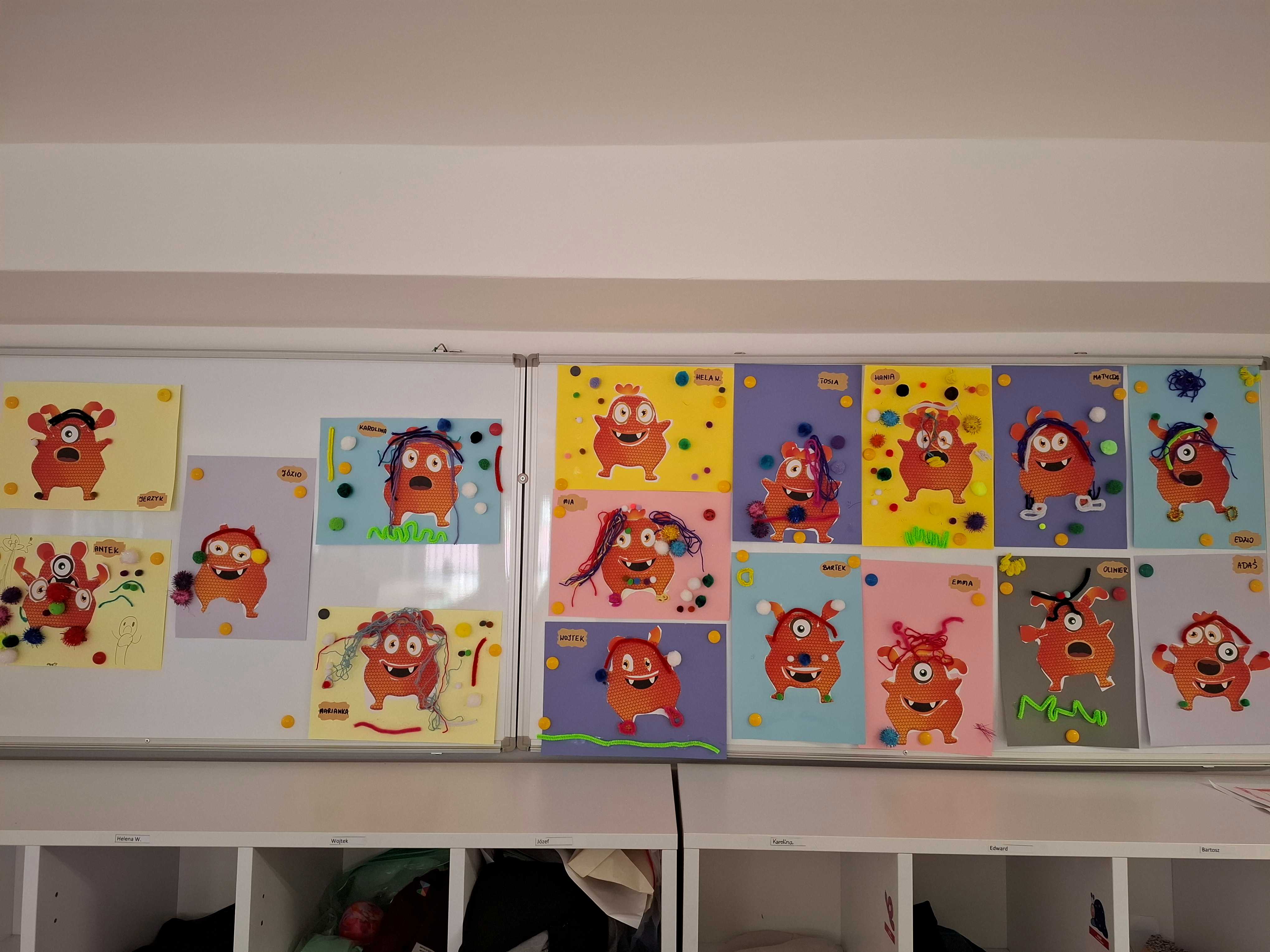 W czwartym tygodniu zajmowaliśmy się tematem bajek i wyobraźni. Przedszkolaki ćwiczyły język i mięśnie twarzy podczas zabawy logopedycznej „Co robi smok?”, słuchały wiersza „Smok Teofil Kalacenty”, rozmawiały o bajkowych stworach i postaciach, określały postacie rzeczywiste i bajkowe, wykonały pracę plastyczną „Bajkowy stworek”. Zabawy i rozmowy o fantastycznych postaciach dostarczyły nam dużej dawki śmiechu i radości. Dzieci zapoznały się z literą „E” poprzez analizę i syntezę słuchowa wybranych wyrazów, zabawę językową „Słyszę e”, „Tropimy głoskę e”, a także z cyfrą 4 poprzez zabawy „Jak wygląda czwórka?”, „Czwarty siada”.