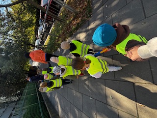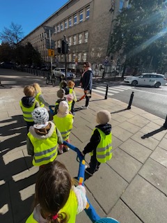 W tym miesiącu poznawaliśmy zasady bezpieczeństwa drogowego. Rozpoznawaliśmy znaki drogowe, uczyliśmy się przechodzić przez pasy, ćwiczyliśmy chodzenie na spacer z naszym pomocnikiem - wężem. Wzięliśmy również udział w próbnym alarmie przecipożarowym, co było dla nas nowym, ale potrzebnym doświadczeniem.