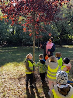 Pod koniec września przywitaliśmy panią Jesień. Śpiewaliśmy, tańczyliśmy, oglądaliśmy liście i obserwowaliśmy jakie kolory pojawiają sie na drzewach. Wiemy już, że zanim liście opadną z drzew będziemy mogli podziwiać je w kolorach czerwieni, złota i brązu.