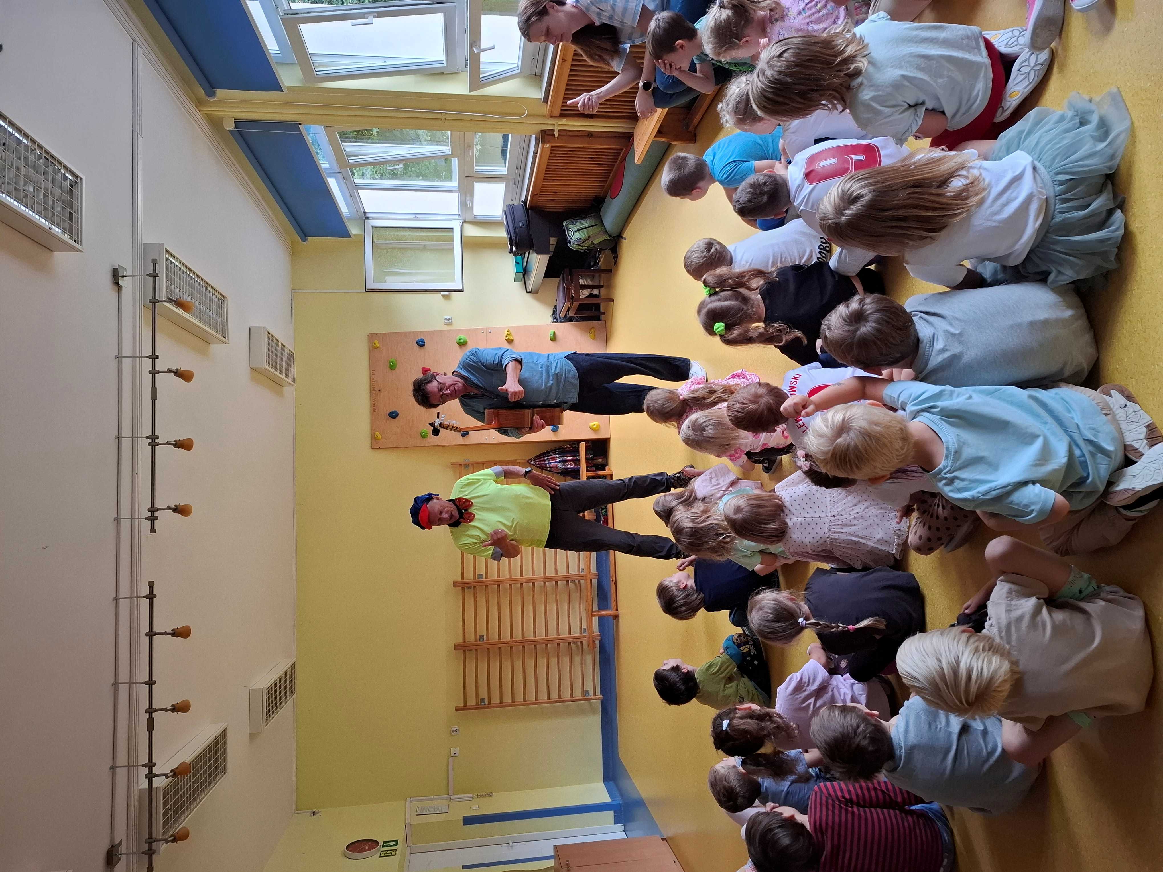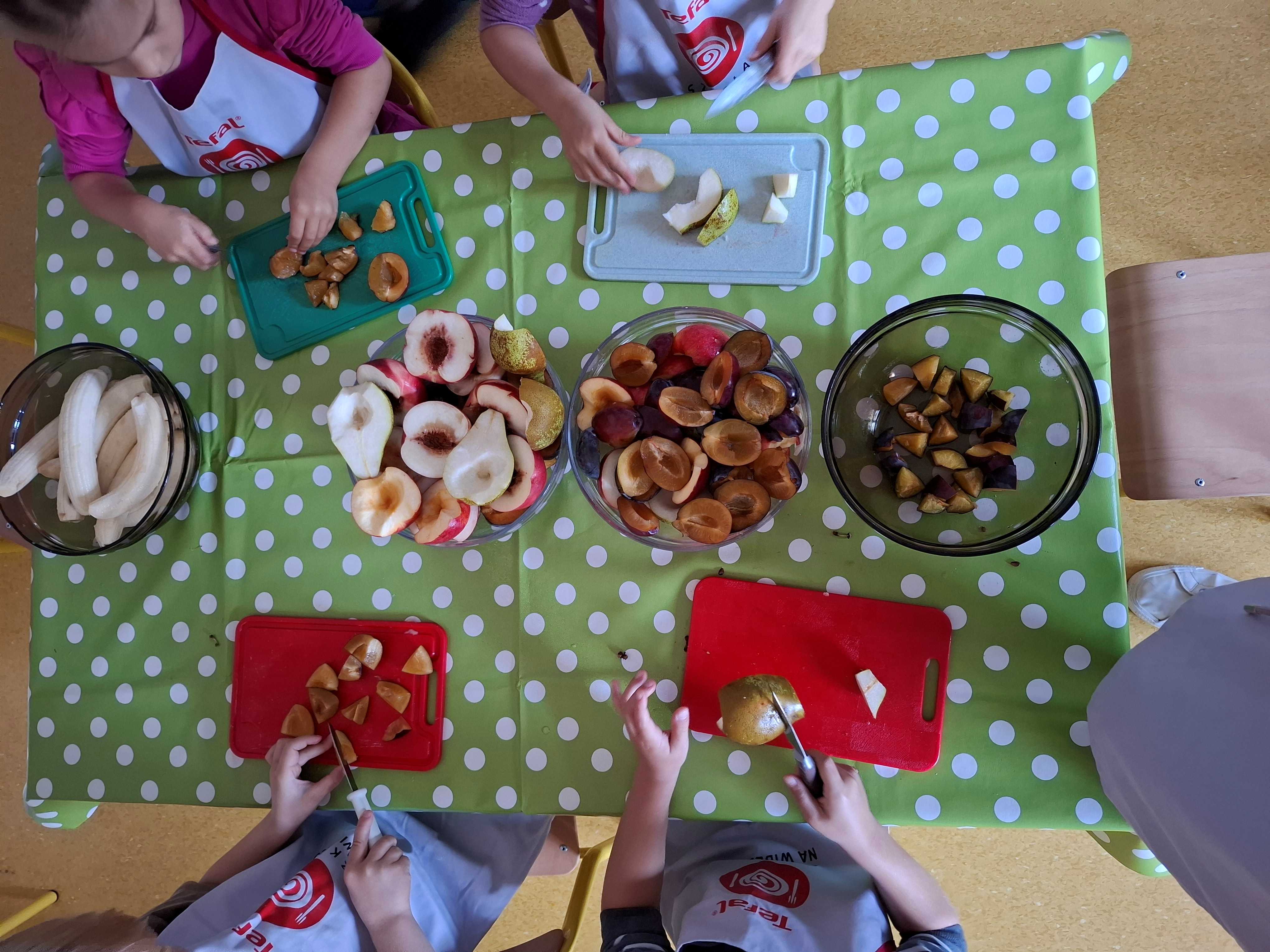 W pierwszym tygodniu września skupiliśmy się na zabawach integracyjnych, budujących dobrą atmosferę między dziećmi, a także dramowych i naśladowczych. Dzieci słuchały opowiadania „Igor, Lena i piszczący krzak” oraz wiersza „Nieśmiały Tomek”, rozmawiały o przeżywanych emocjach, poznały piosenkę „Wrzesień-przedszkolak”, wykonały prace plastyczne „Mój portret” oraz „Okulary”, a także stworzyły w sali kącik przyrody. Miały wiele okazji do zabaw ruchowych w przedszkolu i w ogrodzie przedszkolnym, pamiętały też o utrwalaniu codziennych nawyków higienicznych po zabawie i przed posiłkami.
