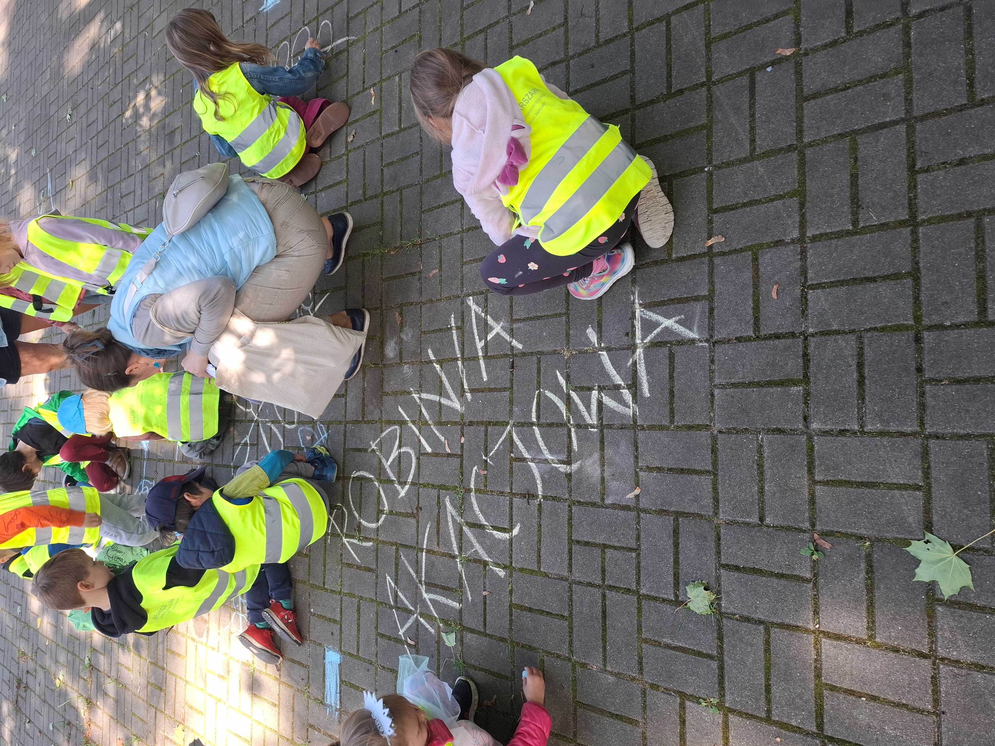 W czwartym tygodniu zastanawialiśmy się wspólnie, czy w naszej okolicy widać już jesień – dzieci oglądały „jesienne dary” – kasztany, liście, szyszki, żołędzie, poznawały jesienne owoce, rozmawiały o wierszach „Liście”, „Jesienny walc”, wykonały piękne jesienne prace plastyczne. Przedszkolaki poznały literę „o”, wykonywały ćwiczenia analizy i syntezy sylabowej, wymieniały słowa rozpoczynające się głoską „o”, rysowały literę po śladzie.